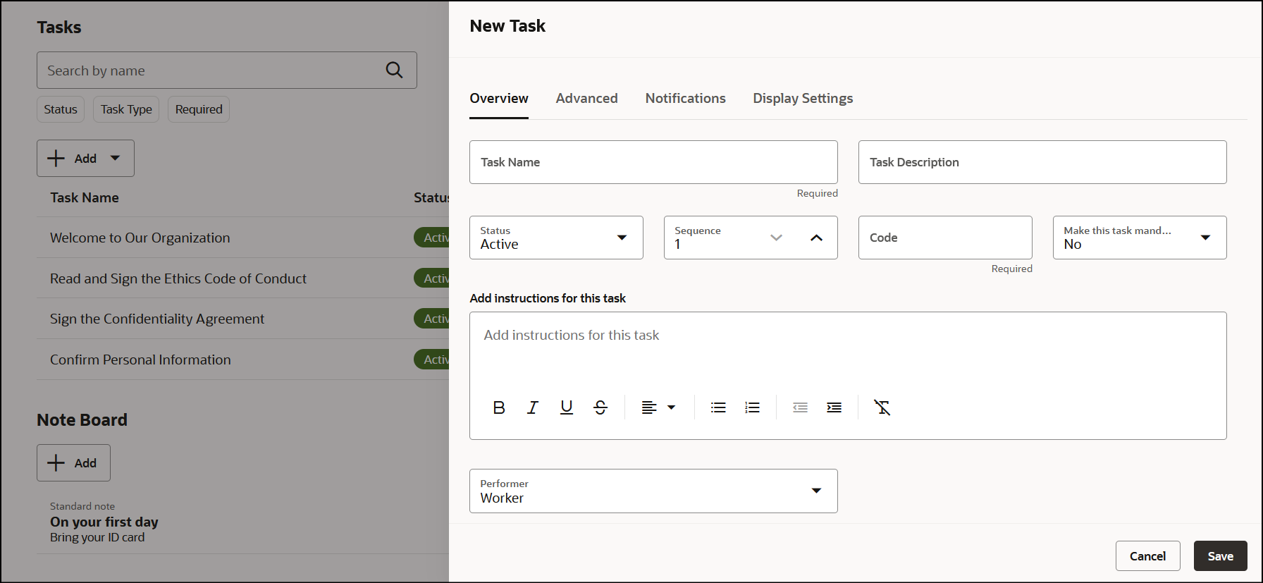 There are dozens of Guided Tasks in PLM. In the image above, you can see an example of a Guided Task that helps onboard a new hire into the company. Each step in the Guided Task has a specific purpose, and users need to complete all steps to finish the task. I worked on several Guided Tasks during my time there. Below, I share details about the Guided Task to which I contributed the most.